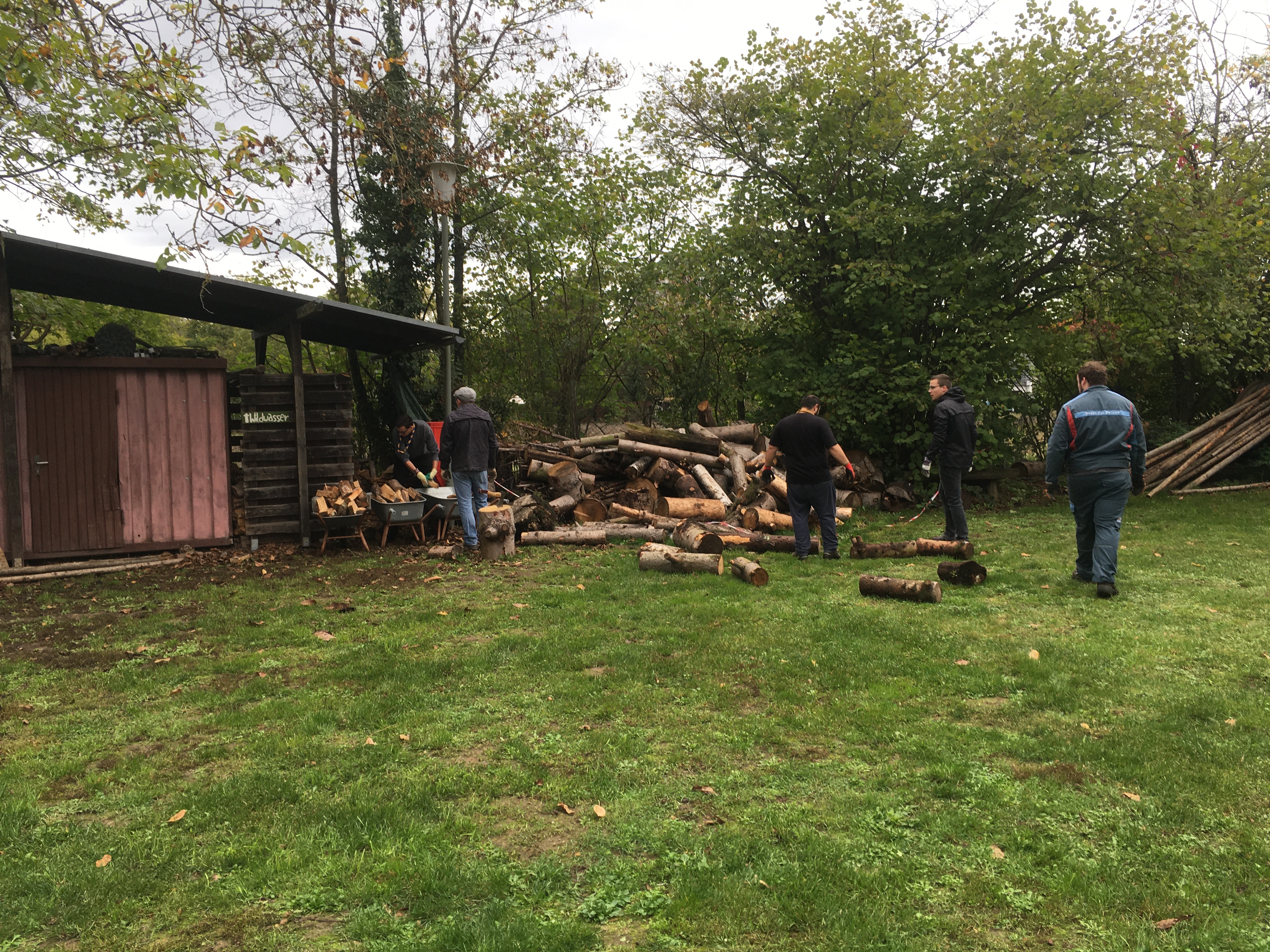 Der Arbeitseinsatz war dadurch sehr produktiv. Laub wurde gerecht, Hecken wurden gestutzt, tote Äste wurden entfernt, Nüsse wurden gesammelt, das Grundstück wurde aufgeräumt und viele weitere kleine Dinge wurden noch erledigt. Doch die Hauptaufgabe war es unser Holz klein zu machen und einzulagern. Dafür rückten wir mit schwerem Gerät an. Ohne die Kettensäge und den großen Später hätten wir die raue Menge an Holz auch nicht klein bekommen. Es war sogar soviel, dass unsere Holzlagerplätze ausgebaut werden mussten und das Holz trotzdem bis unter die Decke gestapelt wurde.
