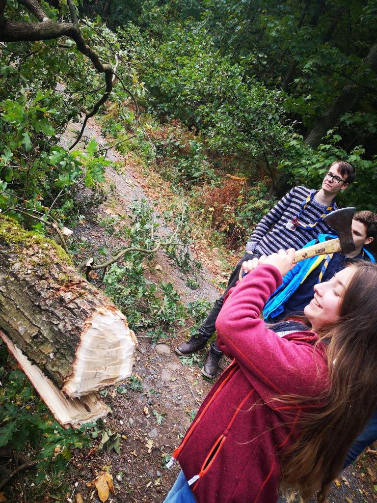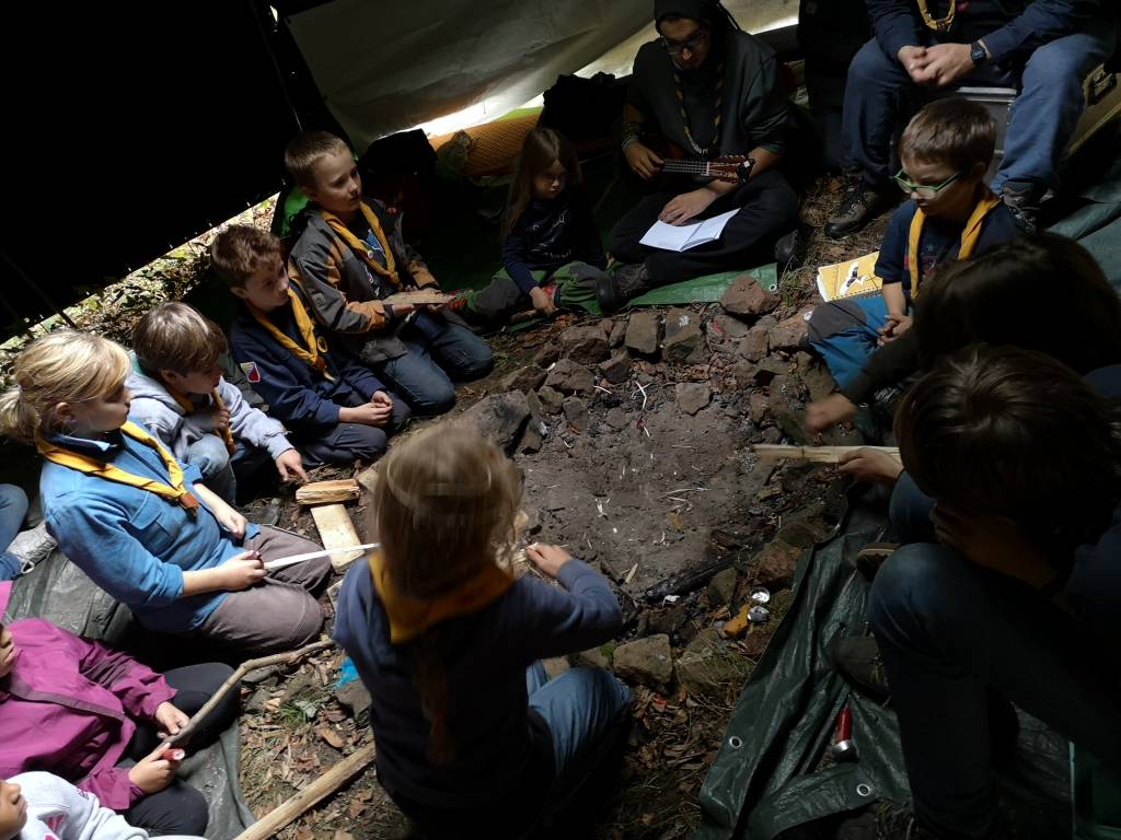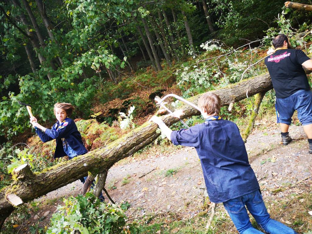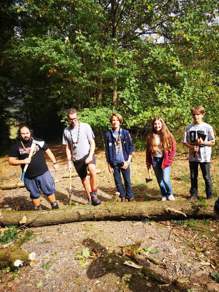 Am vergangenen Wochenende fand das jährliche Herbstlager statt. Los ging es gegen Abend im Stammesheim. Die Vorfreude auf das Lager war groß, doch als wir in Roßbach ankamen, wurden wir sehr überrascht. Denn auf dem Weg zum Lagerplatz lag ein riesiger Baum, den wir nicht umfahren konnten. Also mussten wir die Autos stehen lassen und die ganzen Materialien, das Essen und das Gepäck einen weiten Weg tragen. Am Abend gab es dann Bratwürstchen im Brötchen, die wir schnell verschlungen haben. Die Abendrunde schloss den Tag ab. Am nächsten Tag frühstückten wir erst und danach versammelten wir uns auf einer nahe gelegenen Wiese, um Gruppenspiele zu spielen. Danach sammelten die Jüngeren Feuerholz. Die Älteren haben währenddessen den Weg vom Baum befreit. Dies hat vielen überraschend sehr viel Spaß gemacht. Danach gab es eine kurze Verschnaufpause. Als nächstes stand auf dem Programm: Feuer machen, welches die Kleineren unter Aufsicht der Älteren ausnahmsweise selbst machen durften. Am Abend gab es dann leckeres Chilli zu essen und auch dieser Tag wurde mit einer gemeinsamen Abendrunde beendet. Somit war das Lager zu Ende und man ging mit schönen Erinnerungen nach Hause.