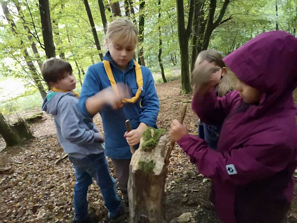 Während eines Postenlaufes wurden Waldläuferzeichen gelernt, Liegen gebaut und Spiele gespielt. Durch diesen Postenlauf haben unsere Gruppen eine Karte wieder zusammenpuzzeln können, die vorher auseinandergefallen und zerstreut war.