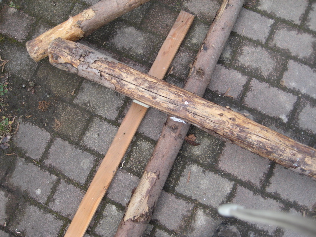 So trafen sich alle fünf Trolle am Ostersamstag und werkelten während des Osterlagers in Groß- (Messen, Sägen und Stangen binden) und Kleinstarbeit (Schnürung) fleißig vor sich hin, bis zum späten Nachmittag das Lagertor an altbekannter Stelle in neuem Glanz erstrahlte.