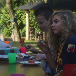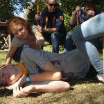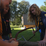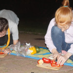 Natürlich wollten wir uns aber nicht so ohne Weiteres von unserem geliebten Statussymbol trennen, und so mussten die Mädels und Jungs in vielen verschiedenen Pfadfinderdisziplinen ihr Können unter Beweis stellen, immer unter unseren strengen Blicken (zumindest wenn wir unsere Sehhilfen nicht wieder irgendwo verlegt hatten). Die Gruppen hatten unter anderem die Aufgabe, sich bei einem Postenlauf in Wilhelmsbad die Zutaten für eine Tomatensoße zu erspielen, die sie dann auch gleich selbst zubereiten und uns kredenzen durften. Außerdem wurden ihre Kenntnisse in Erster Hilfe und Pfadfindertechnik gefordert, kreative Lagerbauten mussten aufgerichtet werden, es gab einen kniffligen Fragebogen rund um den Stamm und das große Stammesheim und, und, und… Zwei Tage lang jagte eine Aufgabe die andere.