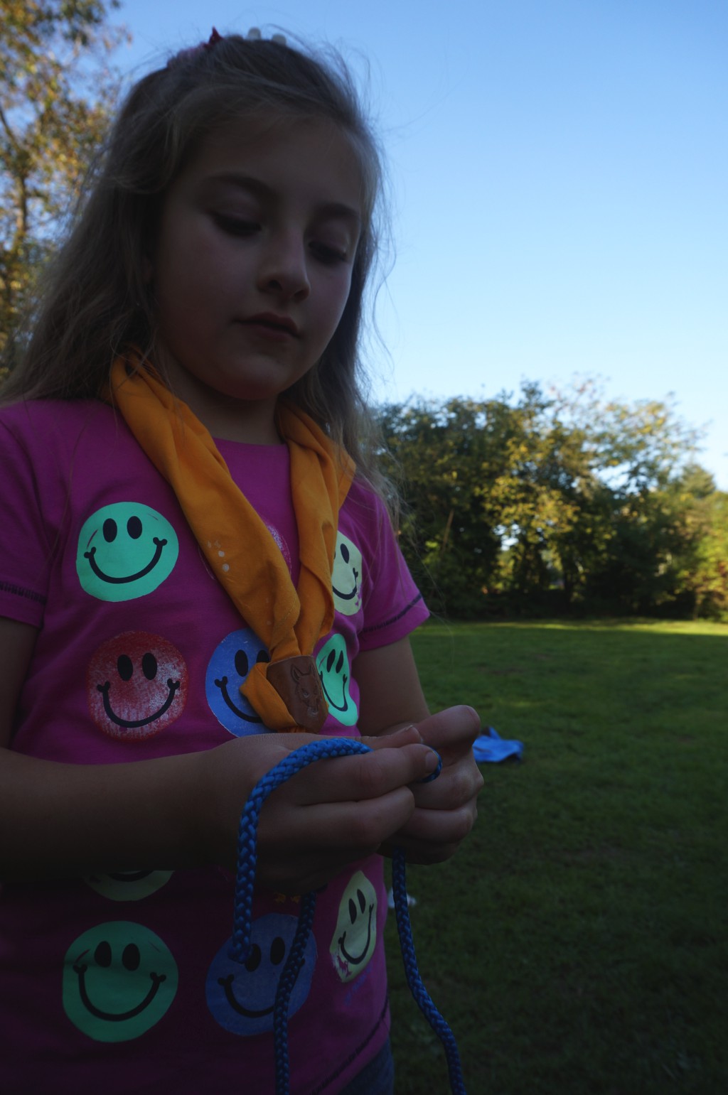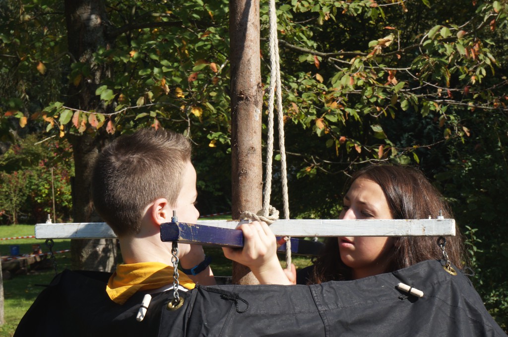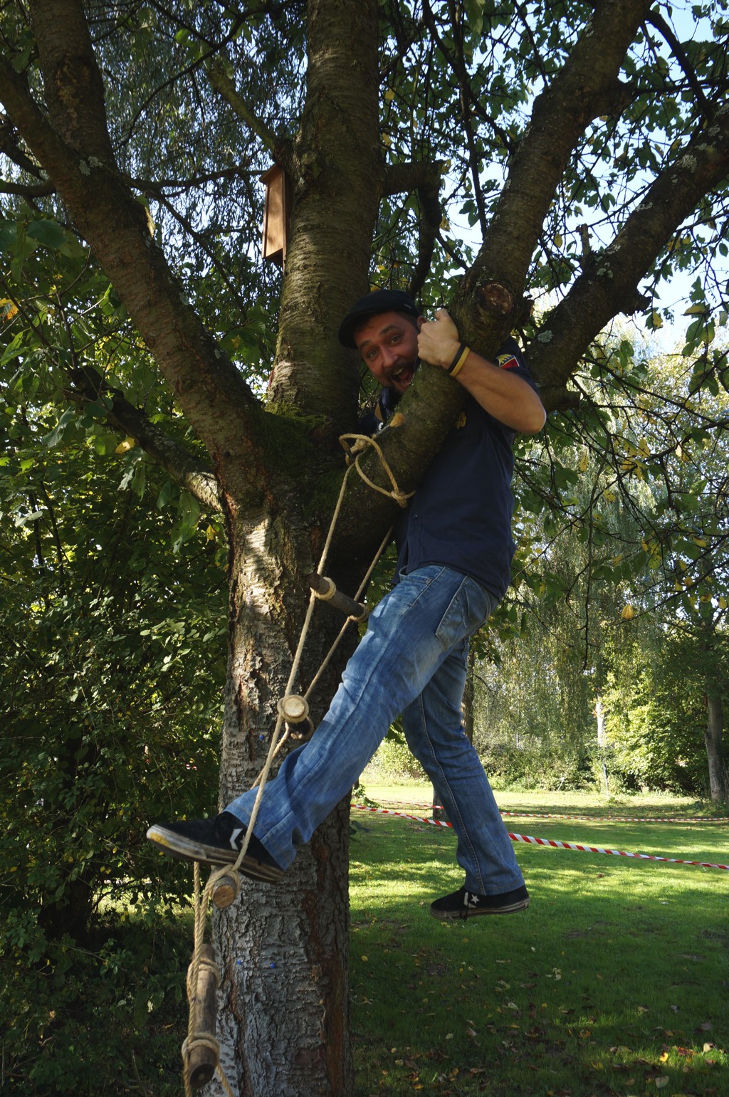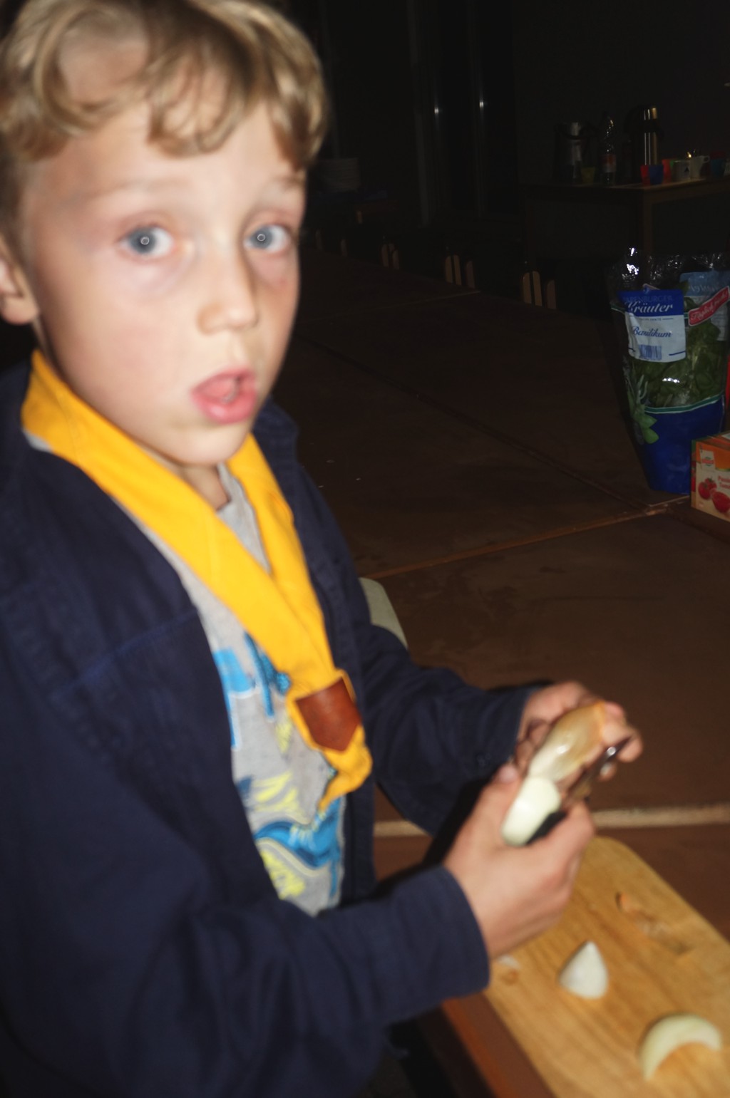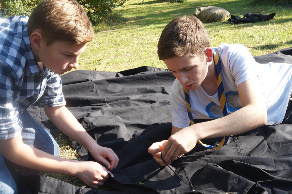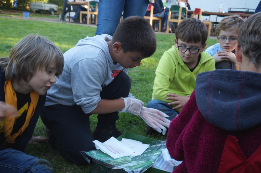 Natürlich wollten wir uns aber nicht so ohne Weiteres von unserem geliebten Statussymbol trennen, und so mussten die Mädels und Jungs in vielen verschiedenen Pfadfinderdisziplinen ihr Können unter Beweis stellen, immer unter unseren strengen Blicken (zumindest wenn wir unsere Sehhilfen nicht wieder irgendwo verlegt hatten). Die Gruppen hatten unter anderem die Aufgabe, sich bei einem Postenlauf in Wilhelmsbad die Zutaten für eine Tomatensoße zu erspielen, die sie dann auch gleich selbst zubereiten und uns kredenzen durften. Außerdem wurden ihre Kenntnisse in Erster Hilfe und Pfadfindertechnik gefordert, kreative Lagerbauten mussten aufgerichtet werden, es gab einen kniffligen Fragebogen rund um den Stamm und das große Stammesheim und, und, und… Zwei Tage lang jagte eine Aufgabe die andere.