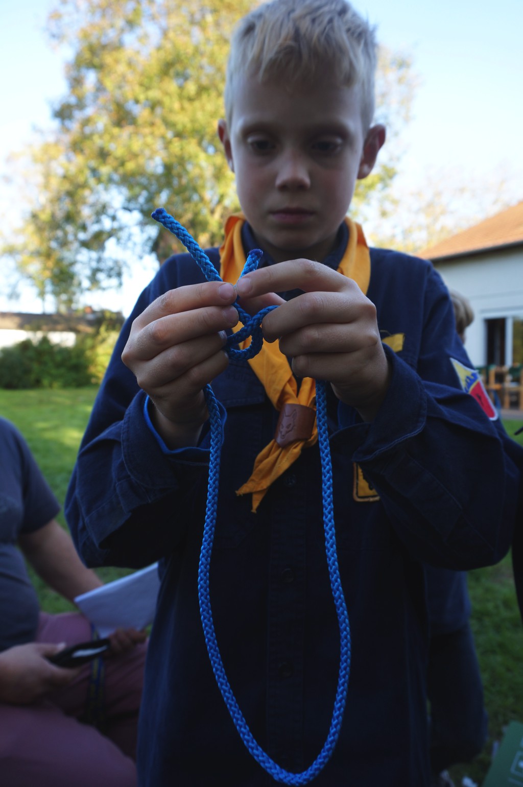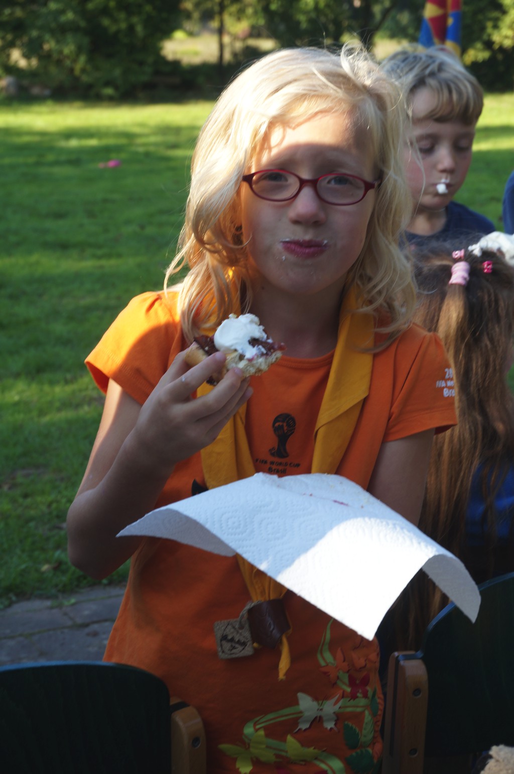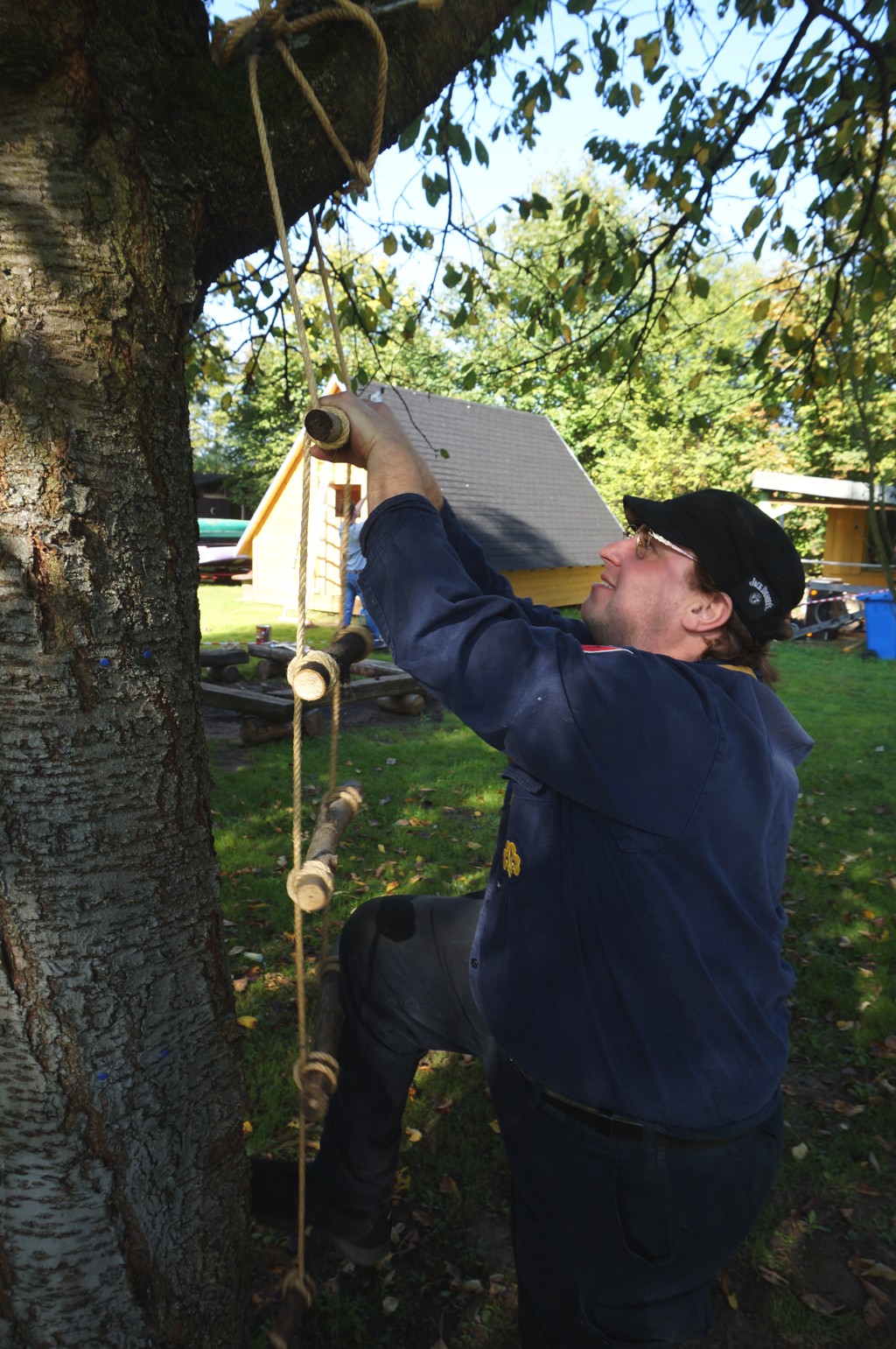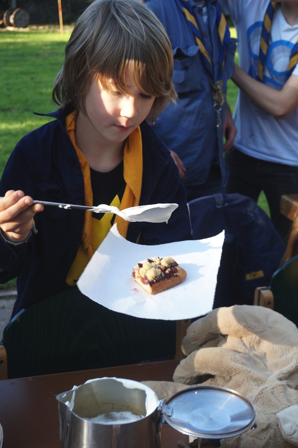 Natürlich wollten wir uns aber nicht so ohne Weiteres von unserem geliebten Statussymbol trennen, und so mussten die Mädels und Jungs in vielen verschiedenen Pfadfinderdisziplinen ihr Können unter Beweis stellen, immer unter unseren strengen Blicken (zumindest wenn wir unsere Sehhilfen nicht wieder irgendwo verlegt hatten). Die Gruppen hatten unter anderem die Aufgabe, sich bei einem Postenlauf in Wilhelmsbad die Zutaten für eine Tomatensoße zu erspielen, die sie dann auch gleich selbst zubereiten und uns kredenzen durften. Außerdem wurden ihre Kenntnisse in Erster Hilfe und Pfadfindertechnik gefordert, kreative Lagerbauten mussten aufgerichtet werden, es gab einen kniffligen Fragebogen rund um den Stamm und das große Stammesheim und, und, und… Zwei Tage lang jagte eine Aufgabe die andere.