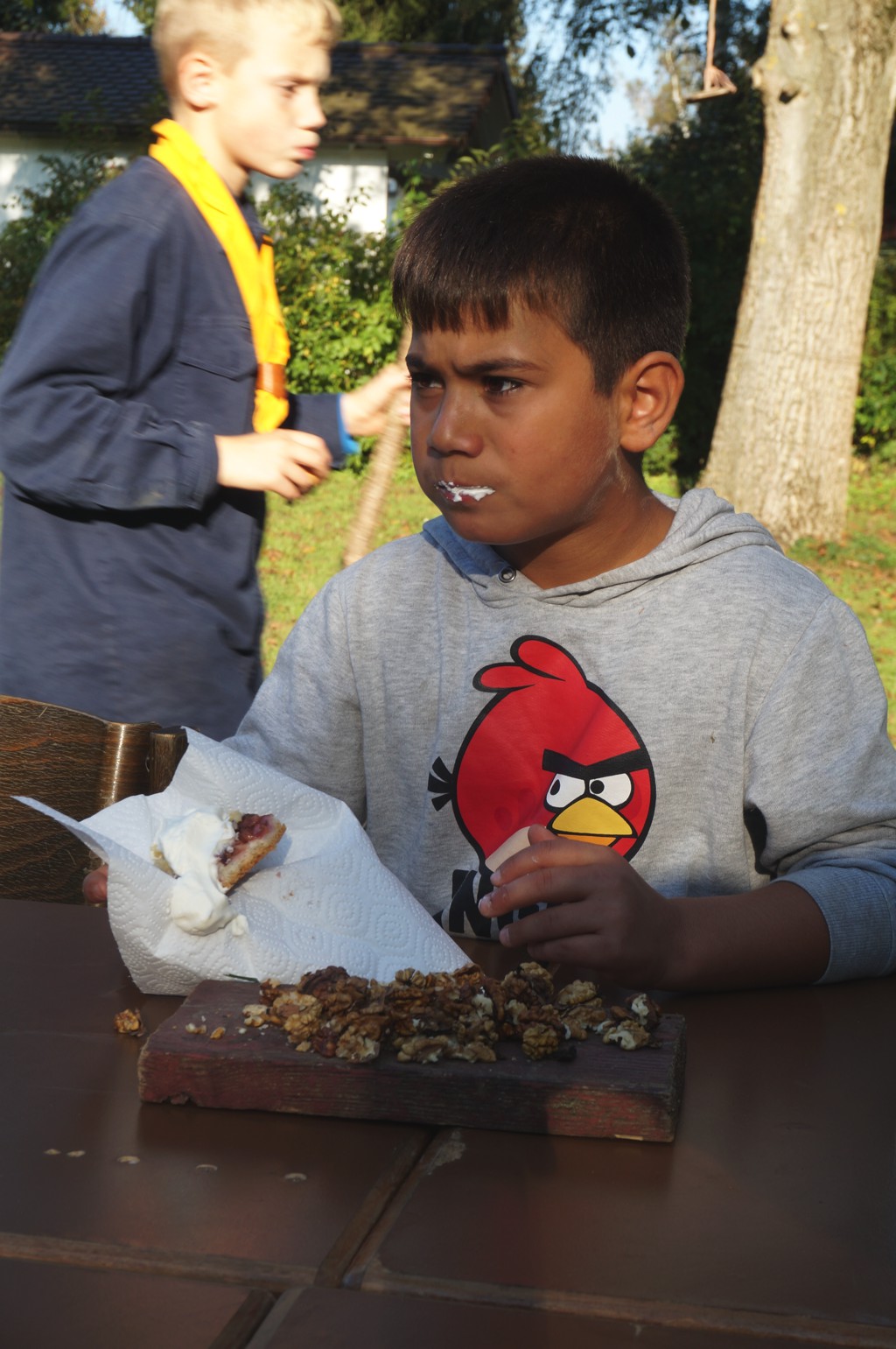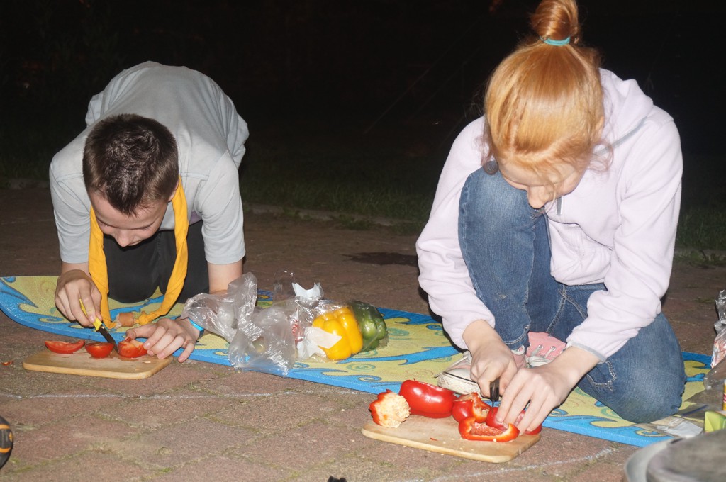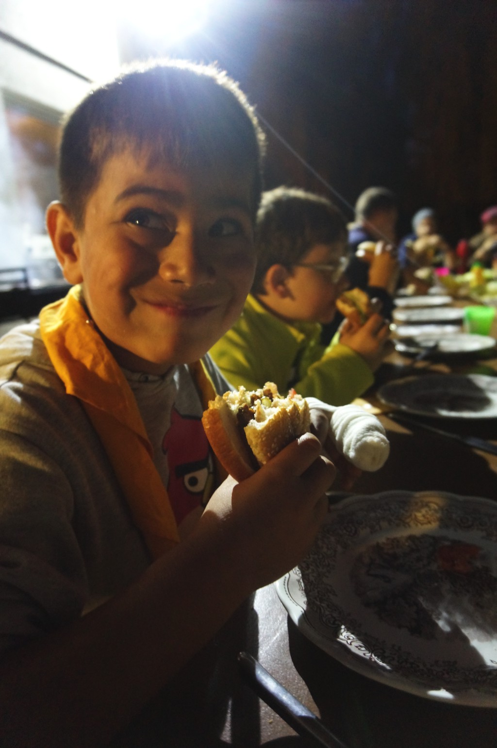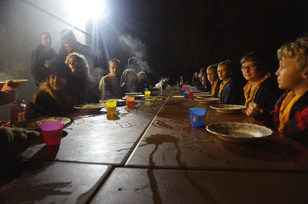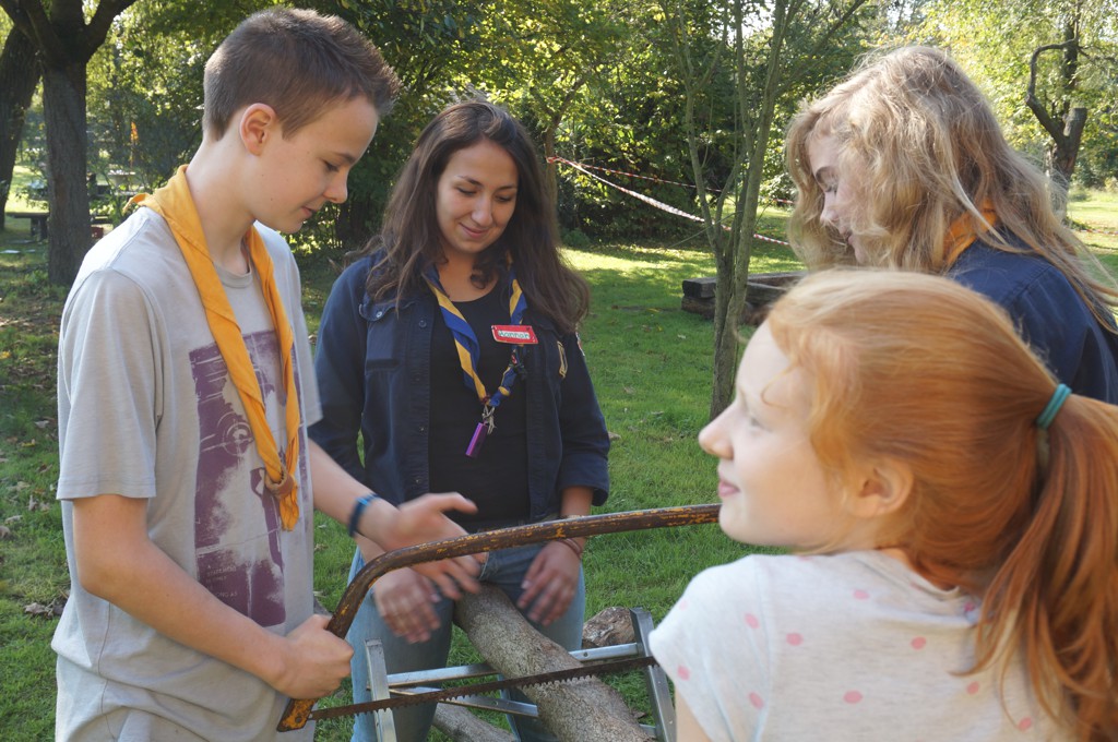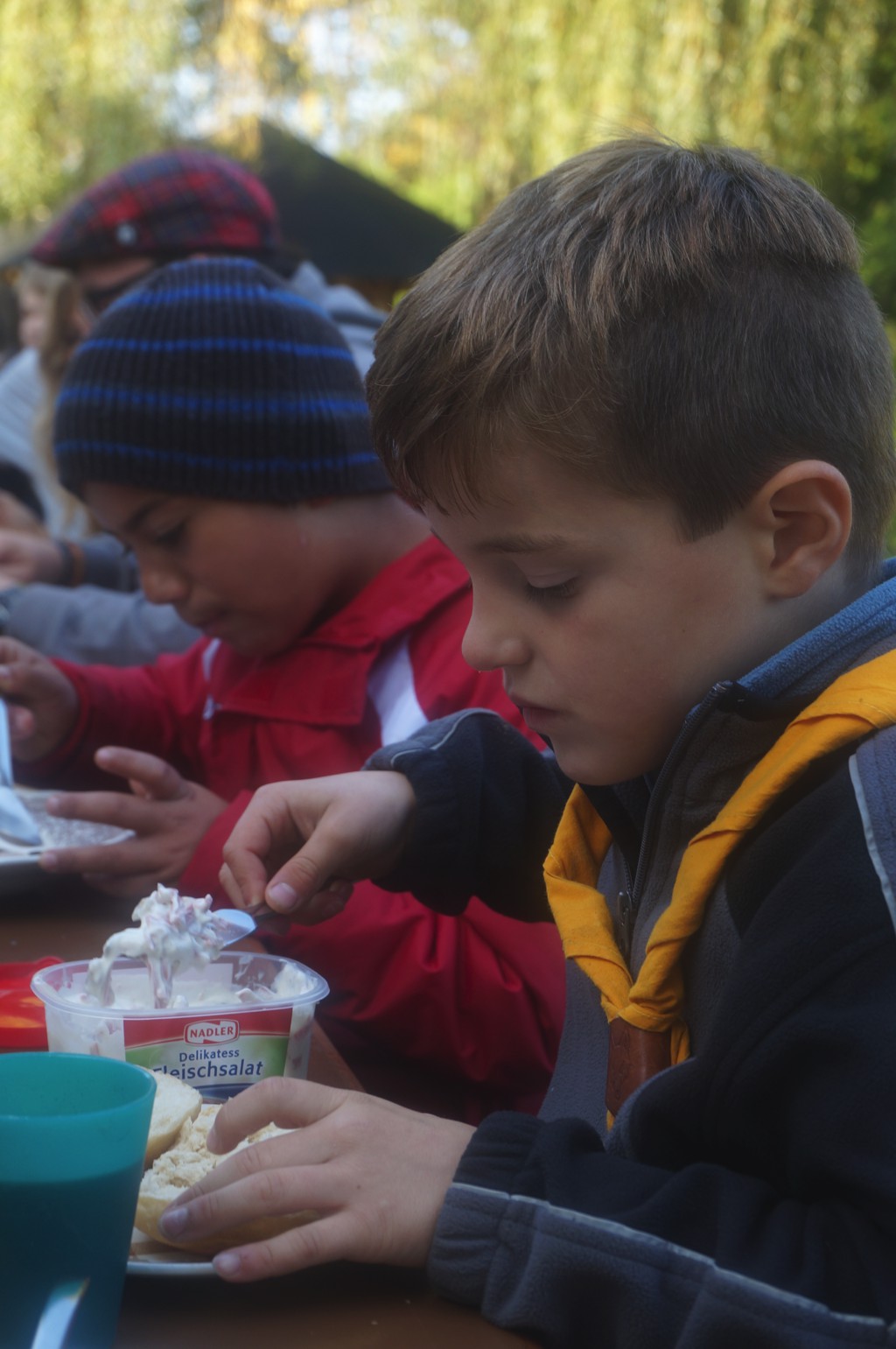 Natürlich wollten wir uns aber nicht so ohne Weiteres von unserem geliebten Statussymbol trennen, und so mussten die Mädels und Jungs in vielen verschiedenen Pfadfinderdisziplinen ihr Können unter Beweis stellen, immer unter unseren strengen Blicken (zumindest wenn wir unsere Sehhilfen nicht wieder irgendwo verlegt hatten). Die Gruppen hatten unter anderem die Aufgabe, sich bei einem Postenlauf in Wilhelmsbad die Zutaten für eine Tomatensoße zu erspielen, die sie dann auch gleich selbst zubereiten und uns kredenzen durften. Außerdem wurden ihre Kenntnisse in Erster Hilfe und Pfadfindertechnik gefordert, kreative Lagerbauten mussten aufgerichtet werden, es gab einen kniffligen Fragebogen rund um den Stamm und das große Stammesheim und, und, und… Zwei Tage lang jagte eine Aufgabe die andere.