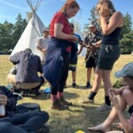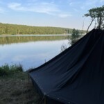 Nachdem wir alle erwacht waren, frühstückten wir erstmal. Danach hieß es Kothe abbauen und Rucksäcke packen. Heute war der heißeste Tag angekündigt, und so war es auch. Etwa 30 Grad in der Sonne, und schon im Schatten fühlte es sich viel zu warm an. Weiter wollten wir trotzdem. Also Rucksäcke an und weiter ging’s. Entlang des Sees, durch Wälder und über Felder ging es weiter, bis wir schließlich den nächsten See erreichten. Dort angekommen, machten wir erstmal Mittagspause und holten Wasser im nächsten Dorf. An diesem schönen Fleckchen Erde wollten wir die nächste Nacht verbringen. Überall entlang des Sees hatten auch Angler ihre Zelte aufgebaut. Wir suchten uns einen gemütlichen Platz direkt am Wasser und bauten die Kothe auf. Ein paar begannen schonmal mit dem Kochen. Es gab Reis mit „Scheiß“ – also Reis mit allem, was man so finden kann: Zucchini, Mais, Soße und Tomaten. Fertig gegessen, packten wir alles, was Bären lieben könnten, in unseren Packsack. Diesen zogen wir entfernt vom Zelt in einen Baum hinauf. So konnten wir sicher schlafen, ohne nachts von hungrigen Bären geweckt zu werden. Dann ging es auch schon ins Bett. Trotz Blutmondschein und Wasserplätschern schliefen wir diesmal nicht so schnell ein. Draußen war es immer noch sehr heiß, und in der Kothe natürlich nochmal ein paar Grad mehr. Nach einer gefühlten Ewigkeit schafften wir es schließlich doch einzuschlafen. Schließlich planten wir, um 6 Uhr aufzustehen, um den Bus pünktlich zu bekommen.