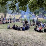 Als wir aufwachten, waren die anderen Wanderer schon längst unterwegs. Wir frühstückten und gingen dann hinunter ins nächste Dorf. Von dort aus fuhren wir nach Turčianske Teplice, wo uns die slowakischen Pfadfinder erwarteten. Wir durften sie auf einem ihrer Stammeslager besuchen. Nach unserer Ankunft badeten wir erst einmal im Bach und knüpften erste Kontakte mit einigen Pfadfindern. Am Abend wurde die Nationalflagge niedergelegt, und der Abschluss des Lagers wurde gefeiert. Das war eine wirklich tolle Erfahrung! (Weitere Eindrücke findet ihr auf Instagram in unseren Highlights @stammwildwasser.)