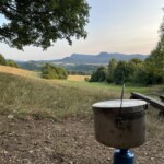 Nach etwas Wandern erreichten wir einen Campingplatz am Fluss und schlugen dort unser Zelt auf. Nach dem langen Bus- und Bahnfahren waren wir natürlich hungrig und machten uns Abendessen. Währenddessen kam noch eine Pfadigruppe von den Löwenherzen dazu. Dann duschten wir nach drei Tagen endlich wieder. Einige von uns wuschen noch ihre Kleidung, und dann machten wir uns kurz vor Mitternacht bereit: Joshua hatte Geburtstag! Gemeinsam stießen wir an, und Joshua erhielt jetzt seinen offiziellen Pfadfindernamen: Joachim. Dieser entstand bei der letzten Großfahrt und hatte sich eingebürgert. Also wurde er noch pfadfinderlich getauft, und alle gingen glücklich ins Bett.