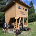 Wie jeden Tag startete unser Tag mit einem Frühstück. Wir trennten uns von den Bussarden und fuhren mit dem Bus nach Jalovec. Dort ausgestiegen, ging es über Schienen, Felder und Bäche den Berg hinauf. Schließlich erreichten wir unseren Schlafplatz für die Nacht, wo Jan und Tobi schon auf uns warteten. Tobi konnte aufgrund seines Bienenstichs nicht wandern, und Jan hatte zu viele Blasen. Sie waren noch eine Station weiter mit dem Bus gefahren. Wir machten es uns also in der Schutzhütte gemütlich und aßen zu Abend.