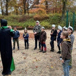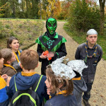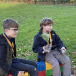 Nachdem am Vormittag ein Kommunikator gebaut wurde, konnten wir nun verstehen, dass es Ersatzteile benötigt, um das Raumschiff zu reparieren. In einem Postenlauf konnte auch das erledigt werden. Am Samstagabend gab es auf einmal ein lautes Geräusch, ganz viel Nebel, und das Alien war weg. Es konnte rechtzeitig das Wurmloch zurück in seine Galaxy erreichen und kam heile zu Hause an.