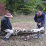 Nachdem sie den Stamm klein gesägt und ordentlich vorm Holzschuppen gestapelt hatten, belohnten sie sich mit Kaffee & Kuchen und einer kleinen Runde Skat.